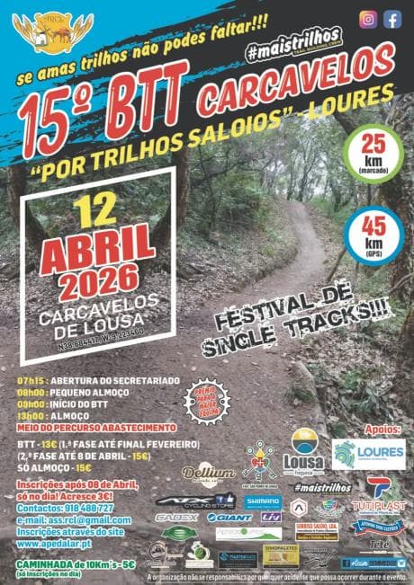 - BTT ride with three route options: 20 km, 40 km, and 55 km