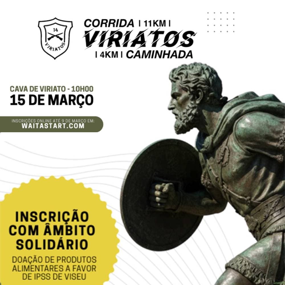 The Corrida dos Viriatos 2026 takes place on March 15 in Viseu, organized by Infantry Regiment 14 (RI14) as part of their festive day celebrations. This urban event offers a unique running and walking experience through the city's emblematic streets, celebrating local history and promoting sport for all.