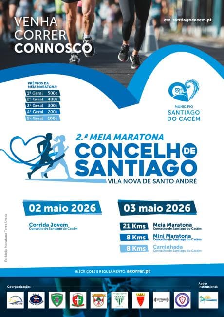 Relevez le défi dans la belle Vila Nova de Santo André avec la 2ème édition de ce semi-marathon et des événements pour tous les âges ! Courez sur un circuit routier en profitant du paysage local et de l'ambiance animée. En plus du semi-marathon, il y a un mini marathon, une marche et des courses jeunes pour toute la famille ! 🔥