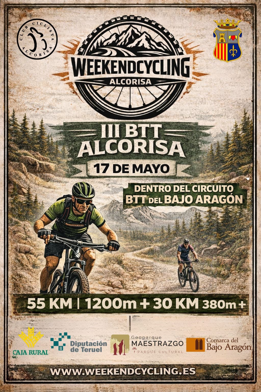 Descobre a adrenalina e o desafio da 3ª edição da Marcha BTT Alcorisa, organizada pelo Club Ciclista Alcorisa, a 17 de maio de 2026 em Alcorisa, Teruel! Uma prova de ciclismo de montanha que oferece duas distâncias para todos os níveis de atletas.