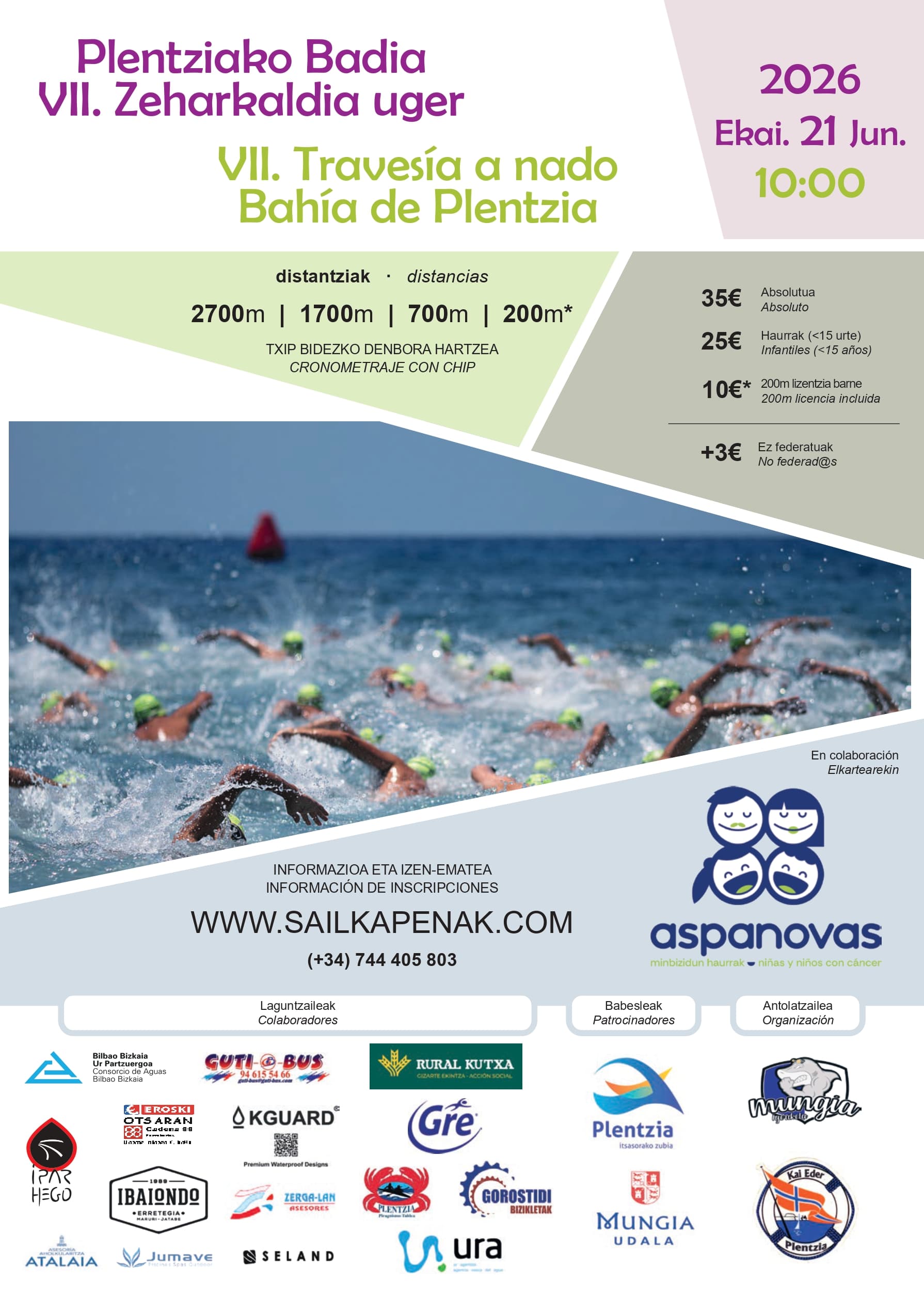 Esta sétima edição realiza-se a 21 de junho de 2026 em Plentzia, com provas que vão dos 200 metros aos 2700 metros, todas com partida e chegada na praia de Plentzia. A organização garante um percurso seguro delimitado por bóias, com tempos limite para cada distância e um ambiente familiar e competitivo.