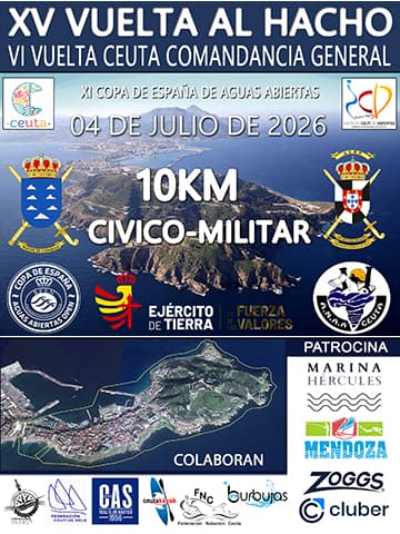 A 15.ª edição da Vuelta al Hacho realiza-se a 4 de julho de 2026 na Praia da Ribera, Ceuta, organizada pela Associação de Natação em Águas Abertas de Ceuta. Esta prova de natação de longa distância de 10 km oferece um ambiente único e desafiante em águas abertas, com correntes, ondas intensas e fauna marinha diversa.