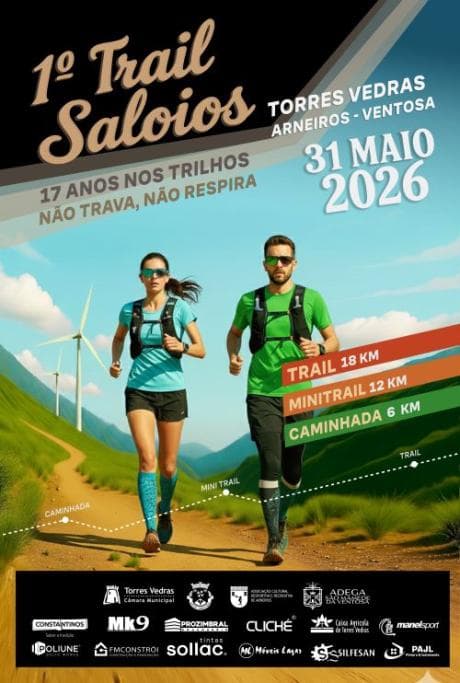 Der 1. Trail Saloios findet am 31. Mai 2026 in Arneiros, Ventosa, Torres Vedras statt und wird von der BTT-Sektion der A.C.D.R. Arneiros organisiert. Dieses einzigartige Event kombiniert zwei Trailrunning-Distanzen und eine Wanderung und bietet ein intensives Naturerlebnis mit atemberaubenden Landschaften und anspruchsvollen Trails.