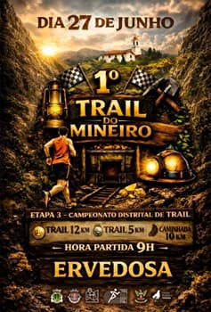 The 1st edition of Trail do Mineiro takes place on June 27, 2026, in Ervedosa, promoted by the Vinhais City Hall and Ervedosa Parish Council, with technical support from the Bragança Athletics Association. This event is the 3rd stage of the District Trail Championship, offering a unique experience on local trails with beautiful natural scenery.