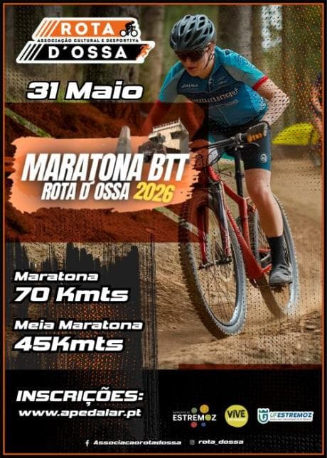 La Maratona BTT Rota D’Ossa se celebra el 31 de mayo de 2026 en Estremoz, organizada por la Associação Cultural e Desportiva Rota D’Ossa con el apoyo del Municipio de Estremoz. Este evento competitivo amateur forma parte del circuito Alentejo BTT 4 Marathon Series, reuniendo a apasionados del BTT para una experiencia única en el corazón del Alentejo.