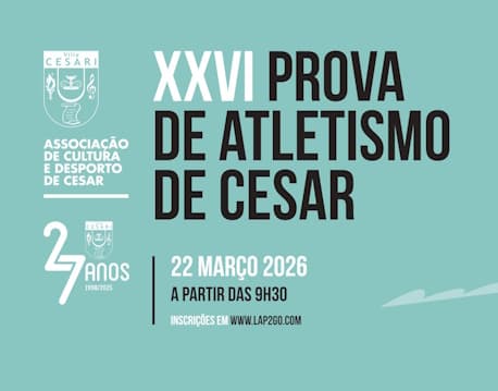 🏃 Prueba de Atletismo de Cesar 2026 es una vibrante celebración del atletismo en Oliveira de Azeméis. Únete a atletas de todas las edades y niveles para una experiencia única, con pruebas desde 600m para los más jóvenes hasta 8,2 km para categorías sénior y veteranos. Disfruta de un día lleno de competición, camaradería y emoción en un pueblo acogedor. 💪🔥