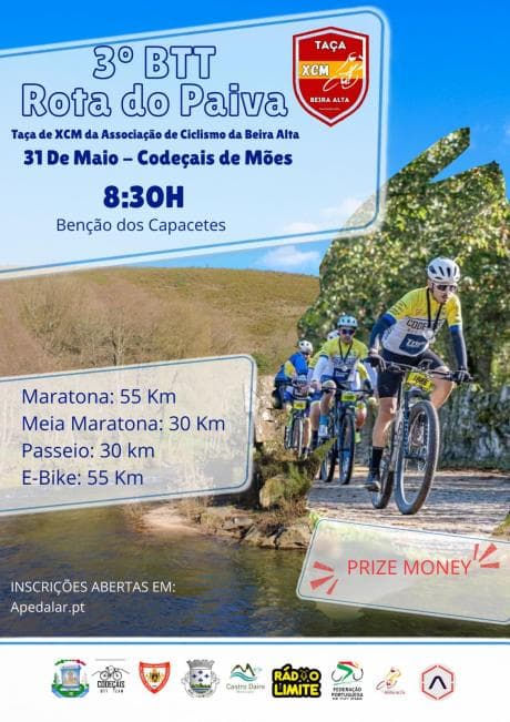 La 3ème édition du BTT Rota do Paiva aura lieu le 31 mai 2026 à Codeçais de Mões, Castro Daire, organisée par l'Union Sportive Culturelle et Récréative de Codeçais-Mões en partenariat avec la Junta de Freguesia de Mões et la Municipalité de Castro Daire. Cet événement propose une formule compétitive et récréative, avec la course de 60 km intégrée à la Coupe XCM de Beira Alta.