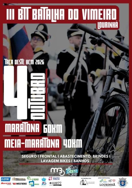 La 4e édition de la Taça Oeste XCM BTT te propose une expérience unique de VTT dans la région de Vimeiro-Lourinhã, organisée par MR3eventus. Cette épreuve amateur de type marathon est ouverte à tous les participants de plus de 18 ans et fait partie de la série passionnante en quatre étapes Taça Oeste XCM.