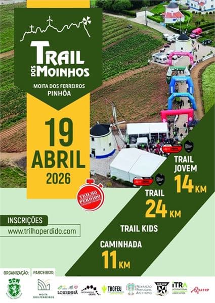Vivi l'emozione di correre sui sentieri storici di Moita dos Ferreiros! Questo evento unico celebra la Giornata Nazionale dei Mulini con percorsi impegnativi che attraversano antichi mulini e paesaggi naturali mozzafiato. Scegli tra il Trail Sprint di 24 km, il Trail Giovani di 14 km, la Camminata di 11 km o il divertente Kids Trail. Un'esperienza per tutti gli amanti del trail e della natura! 🌿🔥