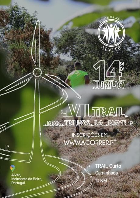 La 7ª edizione del Trail Nos Trilhos da Nave si svolge il 14 giugno 2026 ad Alvite, Moimenta da Beira! Organizzato da Gente da Nave – Associazione di Promozione Sociale di Alvite, questo evento solidale invita corridori e camminatori a esplorare sentieri naturali e strade rurali in un ambiente incantevole.