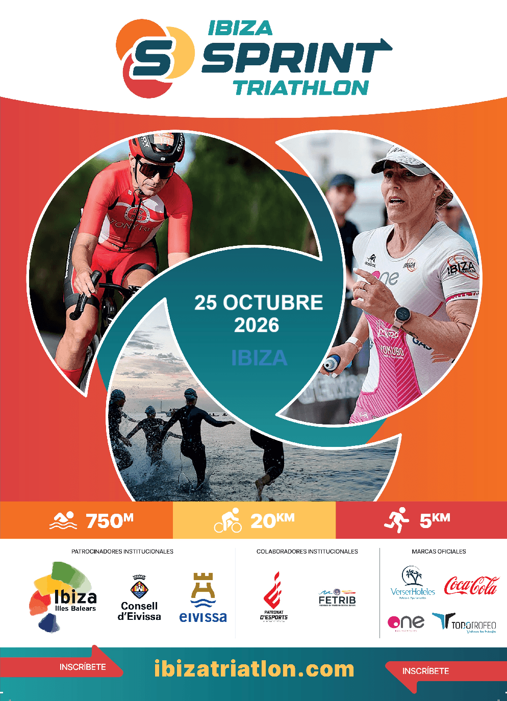 🏔️ Provas IBIZA SPRINT TRIATHLON 2026 – 750 m natação + 17,5 km ciclismo + 5 km corrida · Partida 09:00 · Cutoff 3h