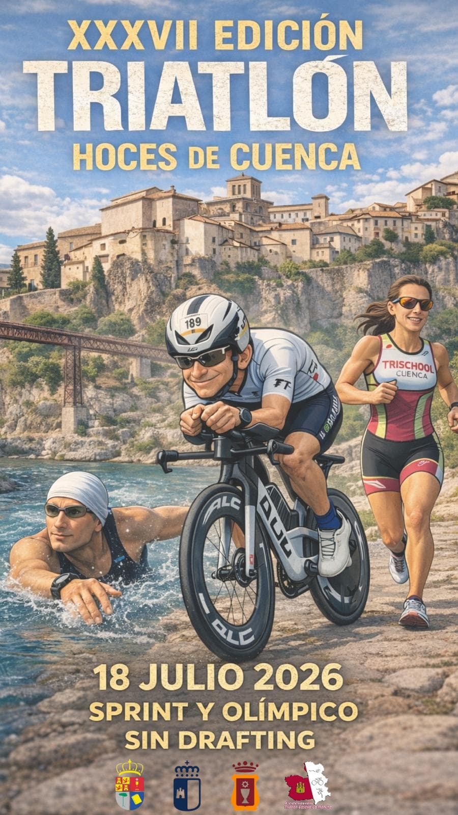 Vive a emoção do Triatlo Hoces de Cuenca, organizado pelo CLUB TRIATLÓN TRISCHOOL CUENCA, que se realiza a 18 de julho de 2026 na bela cidade de Cuenca. Este evento é uma oportunidade única para desafiar os teus limites num ambiente natural espetacular.